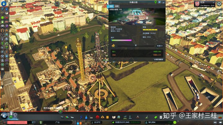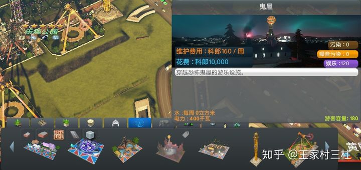 增加公园系统,有城市公园、游乐园、动物园、自然保护区,下图为游乐园。可以根据游客数解锁不同建筑