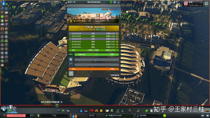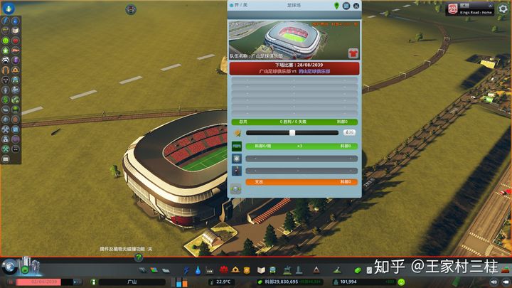 这个DLC是送的,给一个足球场,有不同城市来踢比赛,赢了会提升城市幸福感和20W左右钱,有一些勾选的维护费用用于增加获胜几率