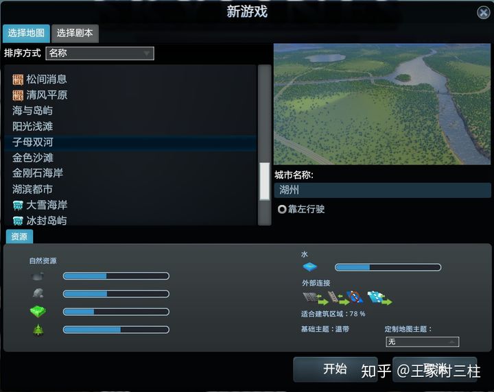 开头选择游戏地图,包括不同的自然资源及外部链接所需的交通类型,正版创意工坊里面有许多地图可以下载
