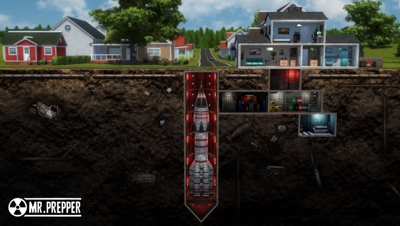 《末日准备狂(Mr. Prepper)》是一款末日生存类的模拟经营游戏。在游戏中战争的发生已然无法避免,已经看清真相的你必须帮助主角在自家宅基地下建造避难所,以此来准备战争发生后的生存途径。