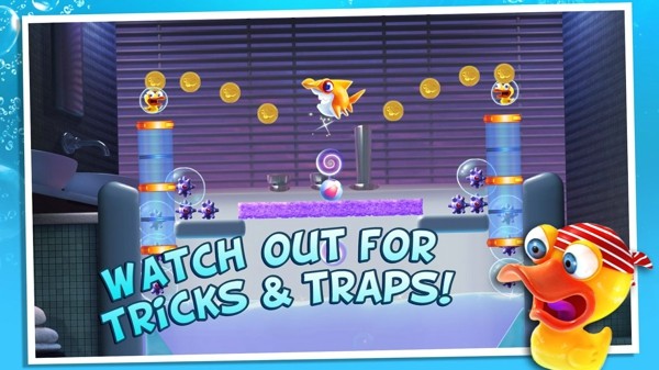 鲨鱼向前冲(SharkDash)Gameloft新出品的一款益智类游戏,游戏采用了目前流行且极其容易上手的抛物线、弹射玩法,将我们的鲨鱼使劲儿的抛出去,对于熟知这种玩法的同学来说,即便手指未玩到麻木琢磨着看也看腻味了,《鲨鱼向前冲(SharkDash)》游戏无论在细节还是关卡难度设计上都显得极为用心,像水池底水池壁之间的碰撞弹射,肥皂泡减速浴盐块遇水即化,以及小鲨鱼冲进水底时,被池水“推搡排挤”的流体效果等。游戏目前拥有四大世界场景,而每个场景中都含24个关卡,游戏中的道具也非常丰富,澡池子里的泡泡、海绵、游泳圈、管道什么的都能成为鲨鲨的帮手。