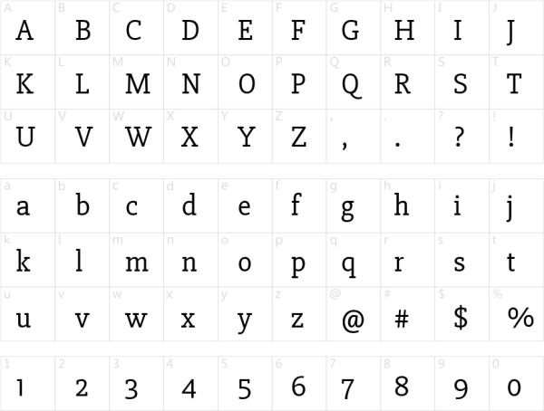 Slabo是一个特定大小字体的集合,用于在线广告和其他网络用途。该集合当前包括此字体Slabo 27px和Slabo 13px。集合中的每个字体都经过了微调,以便在其名称中使用像素大小。