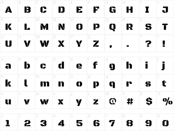 Black Ops One是一个低对比度,半几何字体的灵感来源于军用模板刻字。它是沉重,坚固,穿孔,并看上去最好的使用在中到大的大小,因为在模板中发现的小伤口。