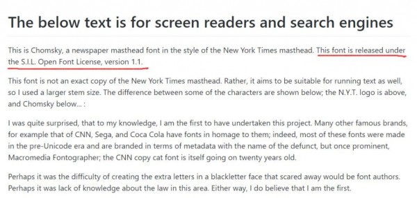 字体介绍Chomsky一个纽约时报刊头字体的风格。字体授权字体来源及授权 :https://github.com/ctrlcctrlv/chomsky字体授权说明:这款字体是依据SIL Open Font License 1.1授权协议免费公开,关于授权协议的内容、免责事项等细节,请查看详细的License授权文件的内容。这款字体允许做的事: