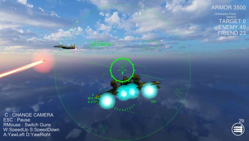 《大规模空战(Massive Air Combat)》是一款3D空战飞行类的射击游戏。在游戏中玩家将驾驶超过100架空中战斗机在广阔的世界里自由翱翔,并且利用出色的技巧来与敌人展开激烈的角逐。这场比赛是虚构的,它与任何真实的国家或组织无关,国家和飞机的类型取决于游戏。