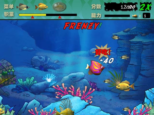 在海底世界里,是一个弱肉强食的地方,游戏一开始你只是一只小鱼,只有不断地吃掉比你还小的鱼,才能长成大鱼哦,随着游戏的进程,后出现各种各样的鱼,还有恐怖的鲨鱼,而吃掉有些鱼后还会有不同的反应哦,黄金鱼吃了后能迅速长大,毒鱼吃了后会失去控制等等,还要利用各种道具,才能取得胜利哦。