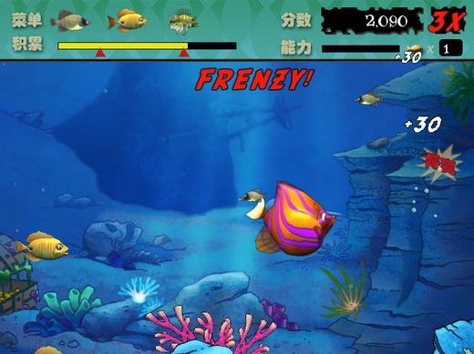 金色小鱼:很少出现,速度极快,吃了它的效果直接完成本级。