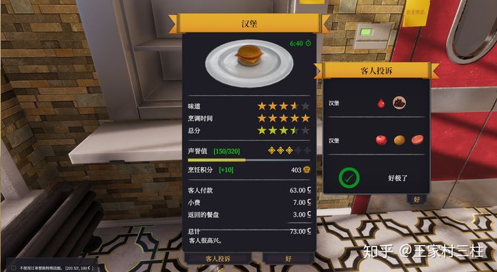 客人很高心,你敢信,旁边会有些做得不够好的地方,改进可以提升味道星值,当声誉值达到一定程度后,会有美食家来品尝,过关就能够升级