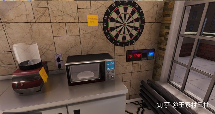 榨汁机和微波炉,旁边还有个飞镖小游戏