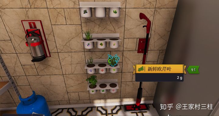 点缀用的蔬菜、灭火器、煤气罐及拖把