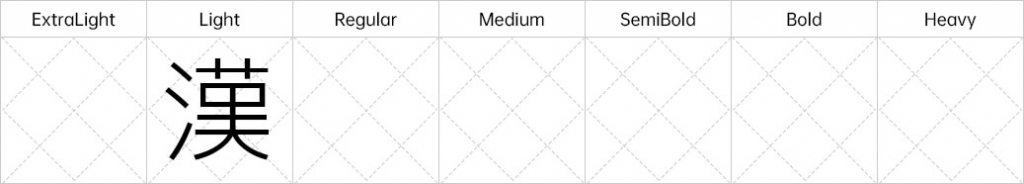 平假名和片假名保留其独特的形状,但不追求过于具体的设计,从而带来清新的效果。 合理平滑的曲线给人一种安全和稳定的感觉。 虽然假名与一般字体有很大不同,但它的设计目的是保留每个识别字符的特性,以免降低可读性。
