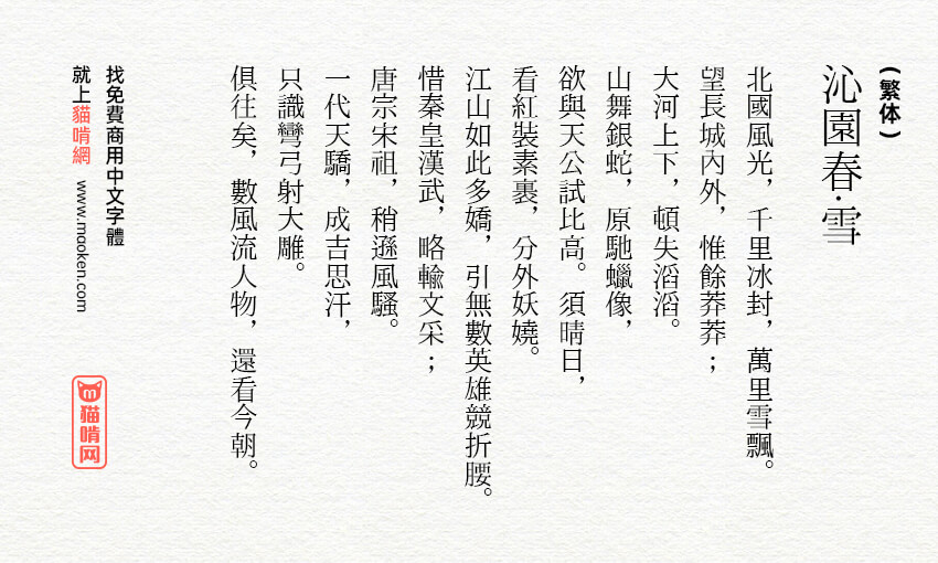 这款字体以紫阳花命名,能让人深深地感受到这款字体的优雅之处,特别适合古典风格的海报设计。在日本,一般会把宋体字形称为明朝体。由于紫阳花明朝Z是由日本的设计师制作,所以字符是以JIS水准为标准,对简体的支持比较差,但是对繁体支持很好。