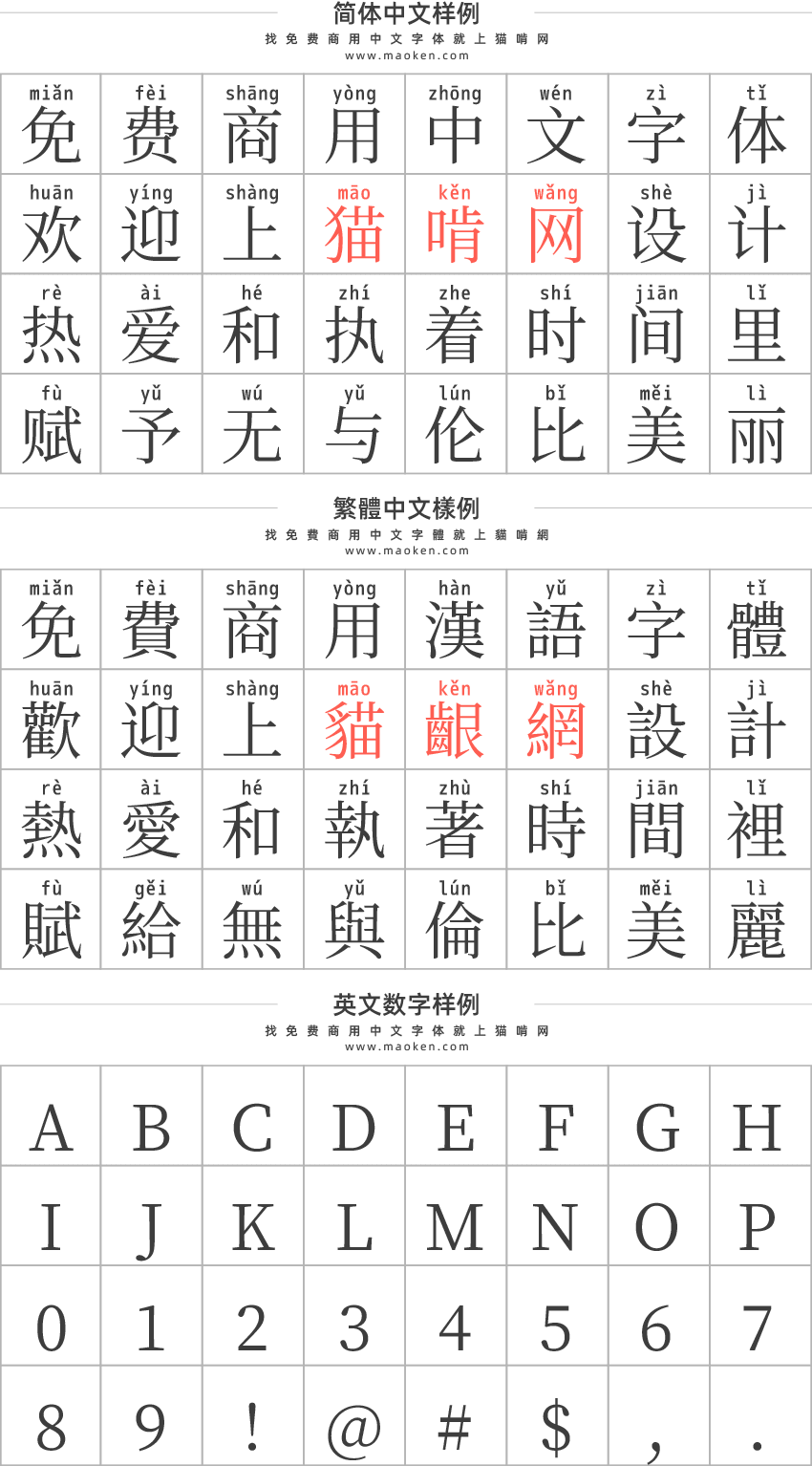 这款字体是依据SIL Open Font License 1.1授权协议免费公开,关于授权协议的内容、免责事项等细节,请查看详细的License授权文件的内容。