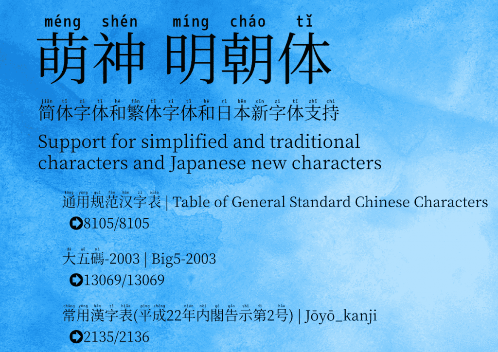 萌神拼音体是用于学习中国汉字的一款字体,是使用思源宋体和M+字体进行改造而成的一款免费商用字体。 这是一种用来帮助学生更快地学习和阅读汉语的字体。在某些设计场景其实也挺实用的,特别是对教育类的设计比较有用。