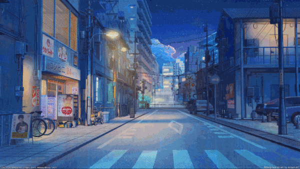 宫崎骏笔下的街道夜景