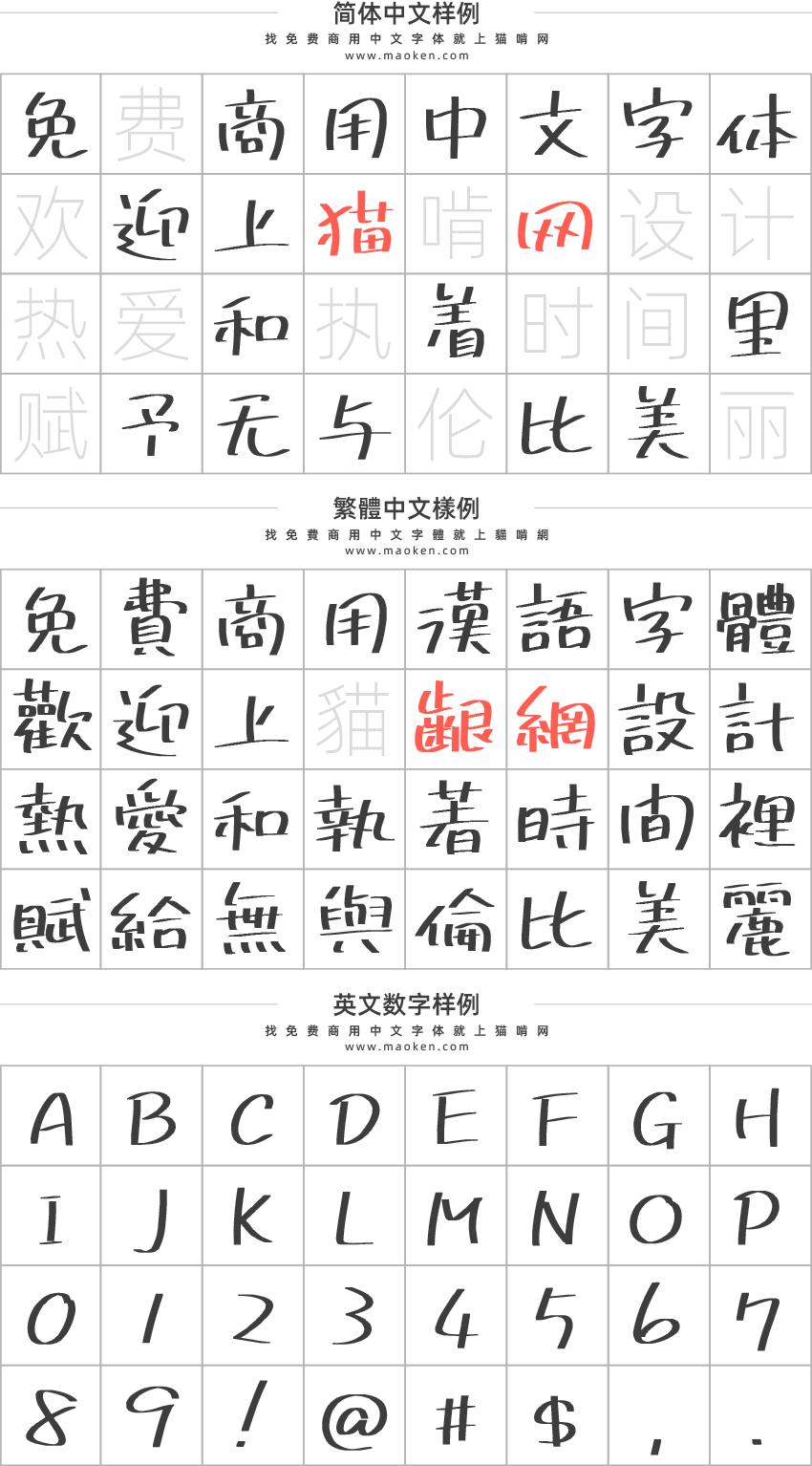 下面的字体使用范围是字体作者说明的使用范围,仅供参考,具体的使用范围和场景,或者有特殊的需求或疑问,请自行联系字体作者咨询。