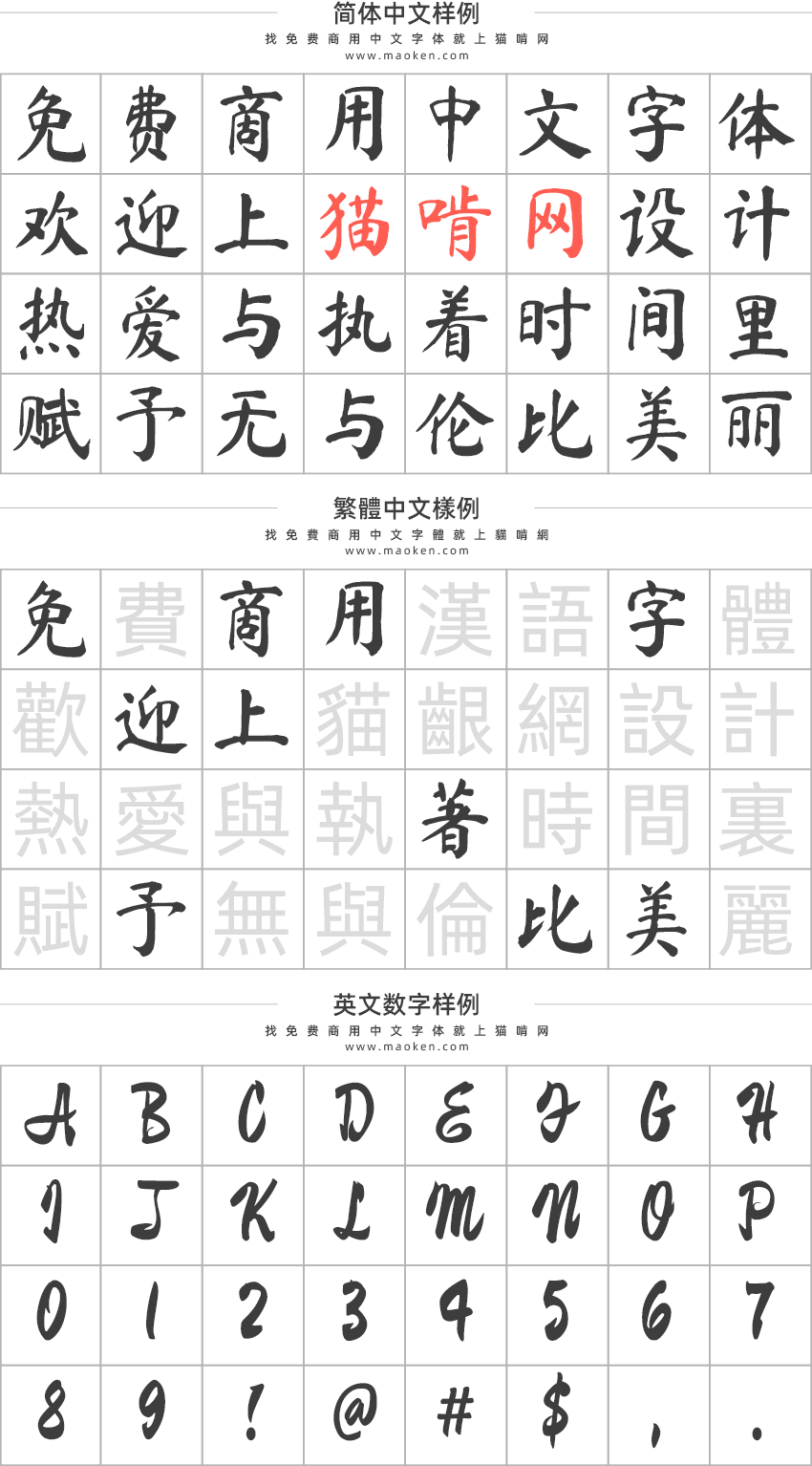 对于这些字体的授权,猫啃网也咨询过钟齐字库。字体的版权属于作者本人,本套字体是作者本人授权钟齐字库把这款字体上传至Google fonts开源字体项目。