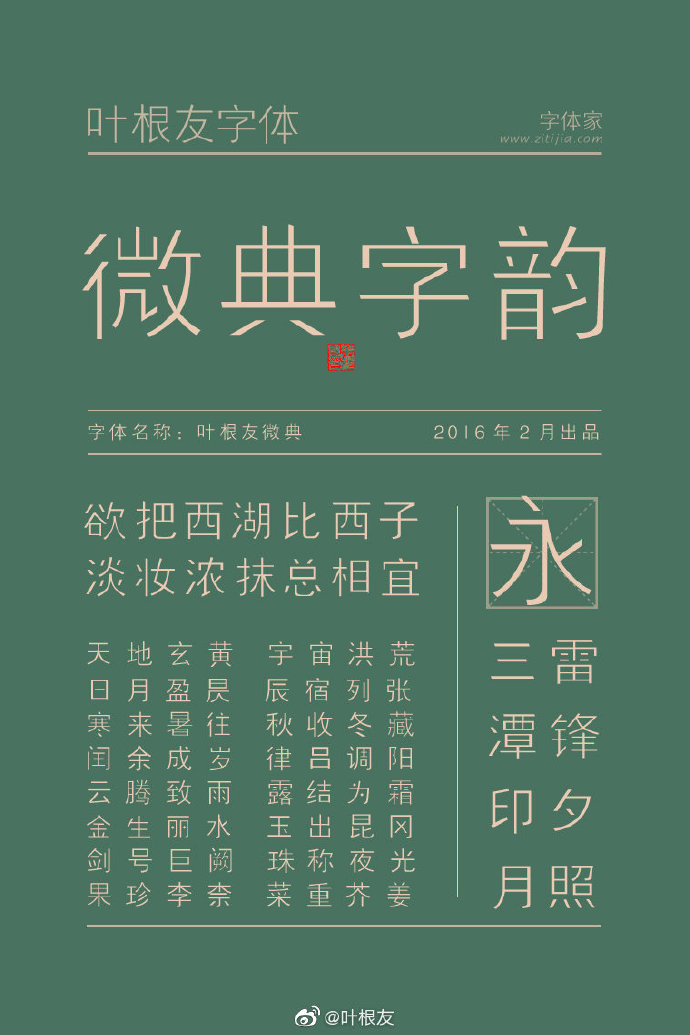 从2019年08月01日起,为了感谢各粉丝的支持,我国字体设计师叶根友特别公开四款字体免费商用。这四款字体分别是 叶根友守中曲画、叶根友微典体、叶根友微禅云、叶根友锐劲体。
