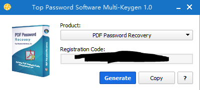 - 4、在注册Product一栏中选择PDF Password Recovery (如下图,会出现注册码,点击copy)