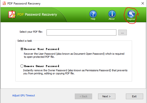 - 软件名:TOP PDF Password Recovery PDF文档密码去除工具
