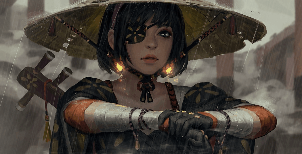 雨中斗笠少女