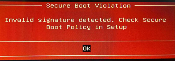 1、若出现下图错误,请在启动电脑,刚刚出现ASUS商标时,快速按下F2键,进入BIOS,选择security,Secure Boot Control,更改为Disable即可。