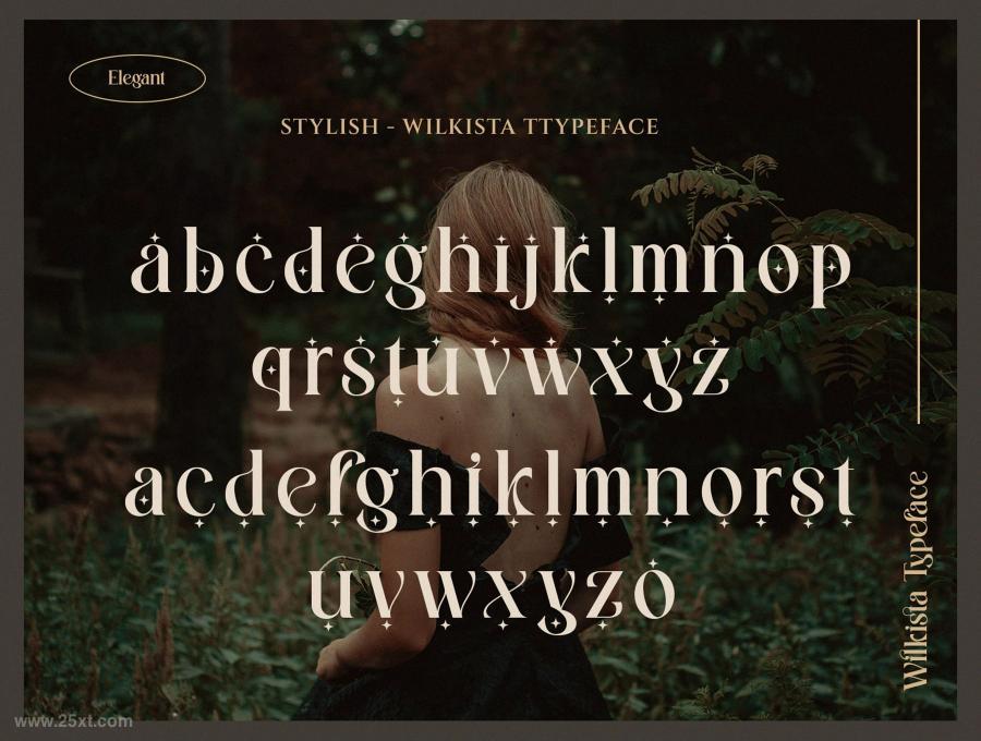 时尚连字字体Wilkista灵感来自著名的极简主义标志设计,非常适合设计模板、小册子、视频、广告品牌、徽标等。