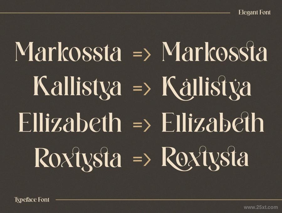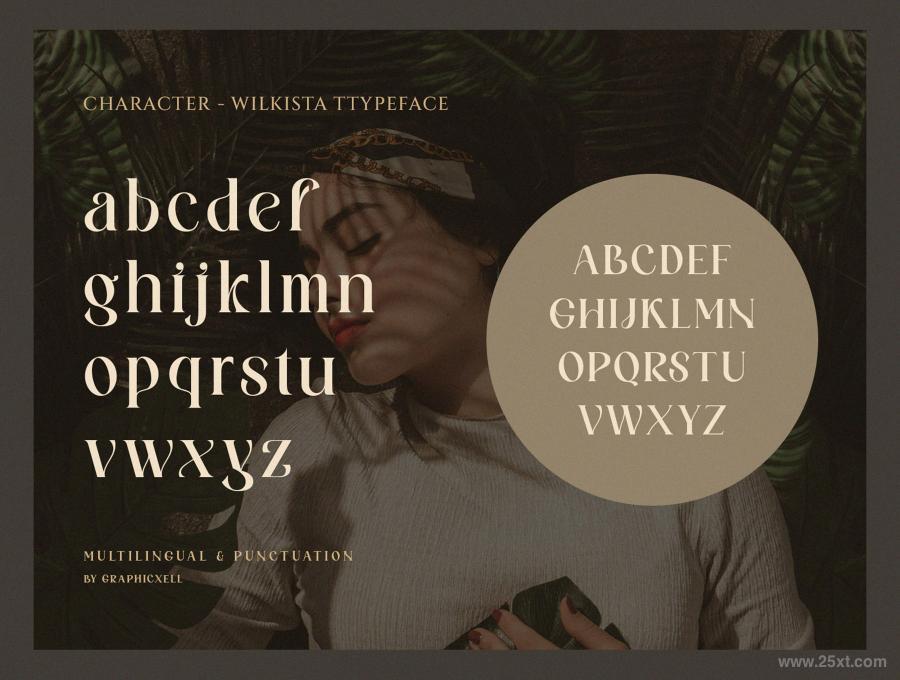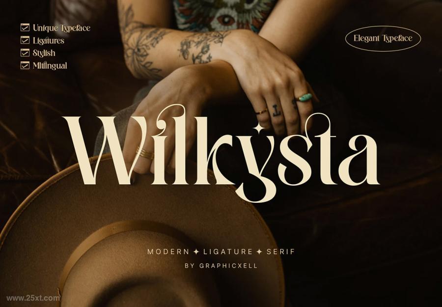 时尚连字字体Wilkista灵感来自著名的极简主义标志设计,非常适合设计模板、小册子、视频、广告品牌、徽标等。字体包含的内容:+ Wilkista (OTF/TTF)+ 标准字形+ 网页字体+ 连字+适用于 PC 和 Mac+ 简单安装可在 Adobe Illustrator、Adobe Photoshop、Adobe InDesign 中使用,甚至可以在 Microsoft Word 上工作。包含 PUA 编码字符 - 无需额外设计软件即可完全访问。字体包括多语言支持。