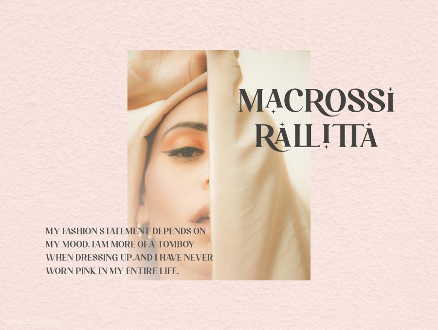 Larissa是一套时尚的英文连字衬线字体,灵感来自著名的极简主义标志,非常适合设计模板、小册子、视频、广告品牌、标志等。包含的内容:Larissa (OTF/TTF)、标准字形、Web 字体、连字。可在 Adobe Illustrator、Adobe Photoshop、Adobe InDesign 中使用,甚至可以在 Microsoft Word 上使用。