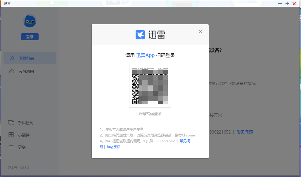 5. 安装成功后,使用迅雷APP扫码登录即可使用了